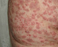 • Пустулёз субкорнеальный Снеддона. Уилкинсона, характеризующийся высыпанием на коже туловища и конечностей пустул с ободком гиперемии по периметру.