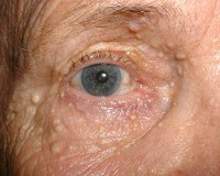 Сирингома (эруптивная гидраденома, множественная сирингоаденома) - порок развития эккриновых потовых желез, который характеризуется доброкачественной гиперплазией эпителия выводных протоков с формированием кистозных образований и узелков. Данное состояние известно достаточно давно, однако долгое время по поводу механизмов его возникновения в научной среде бушевали споры - предполагалась роль врожденных пороков, канцерогенных факторов и других обстоятельств. В настоящее время наиболее распространенной точкой зрения является гипотеза о полиэтиологичности сирингомы - считается, что эта доброкачественная опухоль потовых желез может развиваться под воздействием самых разнообразных факторов. Данная патология чаще поражает женщин (более 80% всех больных), в возрастном распределении преобладают подростки и пожилые лица, в среднем возрасте сирингома возникает относительно редко. Определить встречаемость заболевания достаточно проблематично, поскольку многие больные не обращаются к дерматологу из-за малой выраженности симптомов заболевания.