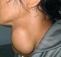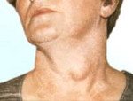 В большинстве случаев узловой зоб не имеет клинических проявлений. Крупные узловые образования выдают себя видимым косметическим дефектом в области шеи - заметным утолщением ее передней поверхности. При узловом зобе увеличение щитовидной железы происходит преимущественно несимметрично.