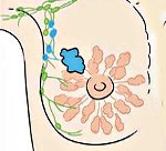 • II стадия - неоплазия до 2 см с метастазами в подмышечные лимфоузлы либо размерами 2-5 см без метастазов.