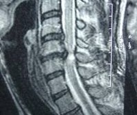 Детальное неврологическое исследование помогает неврологу выявить признаки поражения спинного мозга и определить уровень его локализации. Для более точной диагностики причин развития миелопатии необходима консультация ортопеда или вертебролога. Рентгенография позвоночника при дискогенной миелопатии определяет характерные для остеохондроза сужения межпозвонковых щелей, появление по краям позвонков остеофитных разрастаний. Для определения уровня и степени компрессии спинного мозга пациентам с дискогенной миелопатией проводят миелографию. С целью визуализации грыжи диска и исключения других причин развития миелопатии применяют МРТ позвоночника и КТ позвоночника.