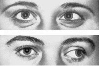 В основном наблюдаются симптомы дисфункции глазодвигательного нерва (III пара черепно-мозговых нервов). К ним относятся: опущение верхнего века, расходящееся косоглазие, мидриаз (расширение зрачка), диплопия. Реже встречается офтальмоплегическая мигрень с симптомами поражения блокового нерва (IV пара ЧМН) или отводящего нерва (V пара ЧМН). В первом случае отмечается двоение изображения при направлении взора вниз и сходящееся косоглазие, во втором - диплопия и сходящееся косоглазие. В отдельных случаях офтальмоплегическая мигрень может сопровождаться сочетанной дисфункцией нескольких указанных нервов.