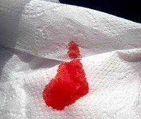 Характер и интенсивность ректального кровотечения зависят от основной патологии. При анальных трещинах пациенты жалуются на интенсивные боли во время дефекации. Кровь отделяется в незначительном количестве и обнаруживается в виде небольших ярко-красных мазков на туалетной бумаге. При геморроидальном ректальном кровотечении может наблюдаться аналогичная симптоматика, однако выраженные боли во время акта дефекации отсутствуют. У некоторых больных отмечается выпадение геморроидальных узлов. Кровь чаще ярко-алая, хотя возможно и выделение темных сгустков. Ректальные кровотечения при геморрое более интенсивные, возможно развитие анемии.