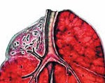 Иное течение свойственно цирротическому туберкулезу легких с нижнедолевой локализацией или значительной площадью поражения. При нижнедолевом циррозе развивается клиника гнойного бронхита - беспокоит кашель с гнойной мокротой, нередко одышка астмоидного типа, периодически повторяется кровохарканье. Температура тела поднимается до 38°С и выше, возникает интоксикационный синдром, появляется множество влажных хрипов. В фазу обострения туберкулезного процесса присоединяются бацилловыдение и симптомы туберкулезной интоксикации. При тотальном одностороннем или двустороннем цирротическом туберкулезе легких на первый план выступает одышка, тахикардия, цианоз.