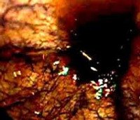 • II cтепень. Бронхоскоп доходит до сегментарных бронхов. Кроме отёка и гиперемии на слизистых оболочках трахеи и крупных бронхов выявляются острые эрозии. Копоть смывается частично. Присутствует немного слизистого секрета.