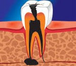 Апикальный периодонтит. Воспаление соединительнотканного комплекса, образующего зубодесневую связку (периодонт), локализующееся вокруг верхушки корня. В острой форме апикальный периодонтит проявляет себя болью и отеком в области поражения, реакцией на горячее, высокой температурой тела и общим недомоганием. Диагностируется апикальный периодонтит во время стоматологического осмотра на основании анамнеза, выявленных клинических проявлений и рентгенологического исследования. Лечение апикального периодонтита заключается в препарировании зуба, обработке каналов, применении противовоспалительных и антибактериальных препаратов, проведении физиотерапии и последующем пломбировании каналов и коронки зуба.