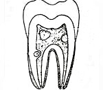 Дентикли. Это образования из дентина или дентиноподобной ткани, формирующиеся в результате минерализации коронковой и корневой пульпы. Точные причины их появления к настоящему моменту не установлены, но с большой долей вероятности процесс запускается в результате воспаления пульпы, воздействия внешних раздражителей, на фоне нарушений обмена веществ и хронических заболеваний. Заболевание обычно протекает бессимптомно, и дентикли обнаруживаются абсолютно случайно в результате рентгенологического исследования. В ряде случаев они сдавливают сосудисто-нервные пучки пульпы, приводя к развитию конкрементозного пульпита, или облитерируют корневой канал. В таком случае проводится удаление образований при помощи ультразвукового эндодонтического аппарата.