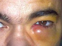 Острый дакриоцистит встречается с более яркими клиническими симптомами: сильным покраснением кожи и болезненным отеком в области воспаленного слезного мешка, отеком век, сужением или полным закрытием глазного промежутка. Гиперемия и отек могут распространяться на заднюю часть носа, веки и щеки. По внешнему виду кожные изменения напоминают рожистое воспаление лица, но при дакриоцистите нет четкого разграничения очага воспаления. При остром дакриоцистите отмечаются резкие боли на орбите, озноб, лихорадка, головная боль и другие признаки интоксикации.