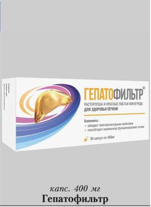 | расторопши пятнистой плодов экстракт сухой (содержит флаволигнаны); винограда красных листьев экстракт сухой (содержит флавоноиды); желатин; наполнитель лактоза; антислеживающий агент магния стеарат (Е470); красители - титана диоксид (Е171); желтый оксид железа (Е172); медный комплекс хлорофиллина (Е141) |
