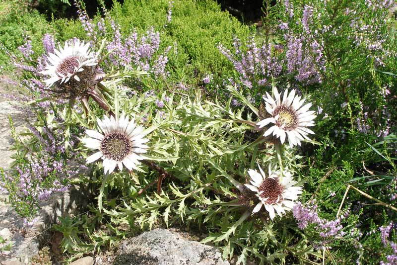 Колючник бесстебельный наделен весьма ценными целебными свойствами, при этом с лечебной целью рекомендуется использовать траву и корни этого растения.