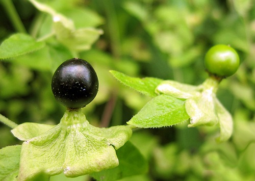 Волдырник ягодный представляет собой многолетнее травянистое растение, высота которого может составить порядка восьмидесяти сантиметров - двух метров. Стоит отметить, что стебли этого растения являются довольно слабыми и коротковолосистыми, а также они могут быть как приподнимающимися, так и лежачими. Листья этого растения либо ланцетояйцевидные, либо яйцевидные, либо продолговатые. Листья волдырника ягодного цельнокрайние, короткочерешковые и острые. Цветки являются одиночными в пазухах листьев: они находятся в довольно негустых олиственных соцветиях, чашечка по окрасу желто-зеленая, она будет еще и короткоколокольчатой. Лепестки этого растения окрашены в зеленовато-белые тона, они будут узкими и двухлопастными, всего их пять штук, при этом тычинок десять, а столбиков три. Плоды волдырника ягодного будут ягодообразными, сидячими, одногнездными и шаровидными, при этом семена блестящие, почковидные и черные. Цветение этого растения приходится на весь летний период времени.