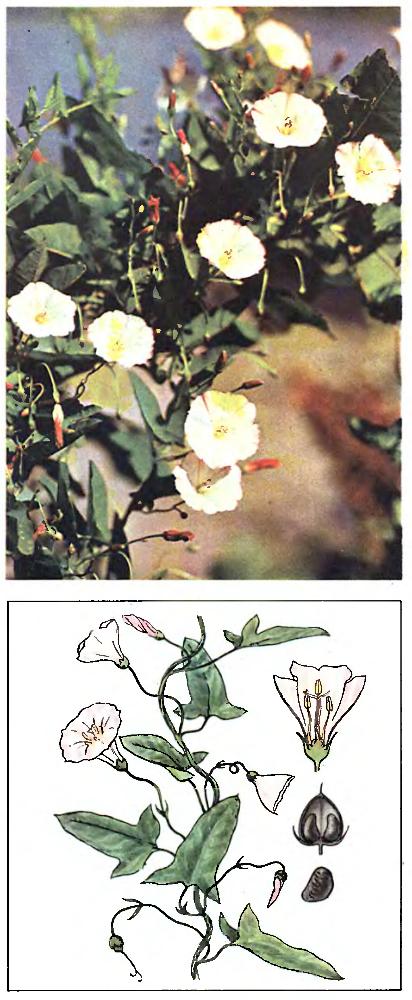 Следует отметить, что вьюнок полевой наделен довольно ценными целебными свойствами. С лечебной целью следует использовать траву, корни, цветки и листья этого растения.