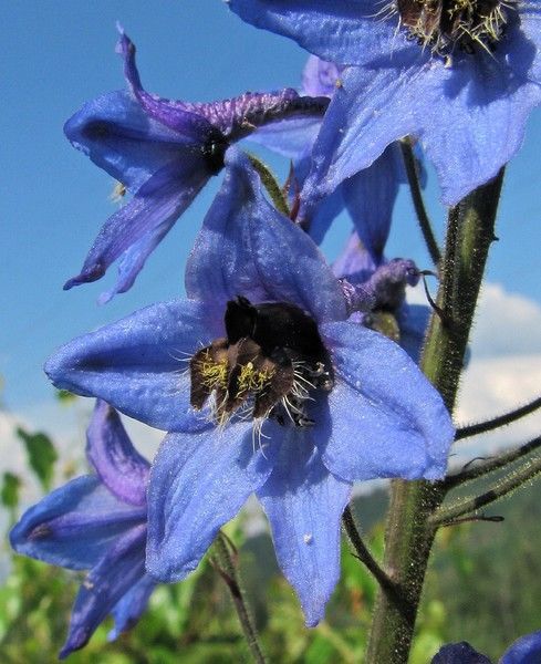 Живокость полевая известна и под многочисленными народными названиями: бородки, василек, голубец, башмачки, заячьи ушки, барвинок, козлики, косарики, грабельки, живокость фиолетовая, сокирки, топорики топорки и мышиный цветок. Живокость полевая представляет собой однолетнее травянистое растение, наделенное распростертыми ветвями, а также отвислыми стеблями, высота которых составит около пятидесяти-семидесяти сантиметров. Листья являются либо дважды-, либо триждытройчаторассеченными на узкие линейные доли. Нижние листья находятся на черенках, а верхние листья будут сидячими. Цветки этого растения окрашены в ярко-фиолетово-синие тона, а также они наделены простым пятичленным венчикообразным околоцветником. Верхний листочек при основании является вытянутым в довольно длинный полный шпорец, а тычинок всего восемь-сорок штук. Плод живокости полевой представляет собой листовку.