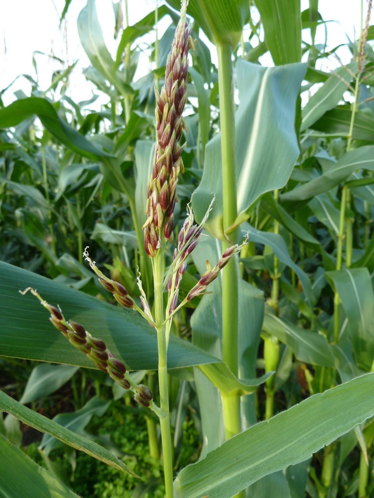 Цветки кукурузы однополые, собраны в раздельнополые соцветия, расположенные на одной и той же особи: мужские цветки образуют крупные метелки на верхушках побегов, а женские - собраны в початки, располагающиеся в пазухах листьев. На каждом растении обычно бывает 1-2 початка, редко больше. Они плотно окружены листообразными обертками. Наружу на верхушке такой обертки выходит только пучок длинных пестичных столбиков с рыльцами. На них попадает пыльца из мужских цветков, которую переносит ветер, происходит оплодотворение, и на початке развиваются крупные плоды-зерновки.