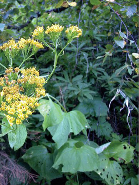 Крестовник ромболистный - многолетнее травянистое растение высотой 50-70 см Корневище горизонтальное, длинное, ползучее, с поперечными рубцами от опавших чешуевидных листьев, густо усаженное шнуровидными придаточными корнями с корневыми мочками, серовато-бурое, внутри с рыхлой сердцевиной или полое. Стебли одиночные, прямые, ребристые, неопушенные, наверху ветвистые. Прикорневые листья длинночерешковые, крупные, шириной до 30 и длиной 17 почковидно-сердцевидные, стеблевые листья постепенно уменьшаются к верхушке стебля. Верхние листья ланцетовидные или яйцевидные. Листья без ушек. Цветки трубчатые, ярко-желтые, собраны в 10-15-цветковые корзинки длиной 5-7 и шириной 3 мм Соцветие крупное, щитковидно-метельчатое. Плод - продолговатая зеленовато-коричневая семянка длиной около 4-5 с буроватым хохолком. Цветет в июле-августе, плодоносит в августе-сентябре.