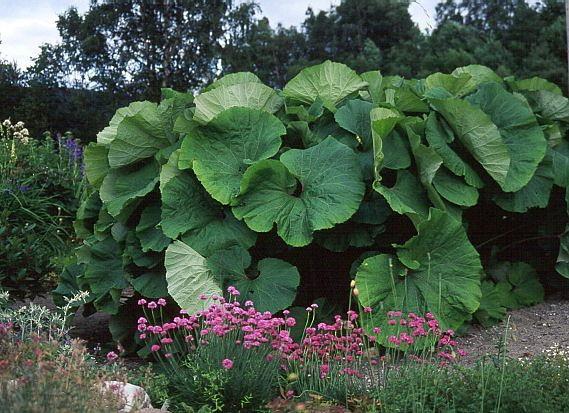 Растение семейства сложноцветных. Создается впечатление, что это странное растение никогда не цветет. Но цветки у него все же появляются ранней весной. Из мясистых, клубневидно утолщенных по узлам корневищ в апреле-мае вырастают невысокие толстые сочные цветоносы, покрытые пленчатыми чешуевидными стеблеобъемлющими листьями. Мелкие цветки, собранные в многочисленные корзиночки, образуют на верхушке цветоноса кистевидное соцветие. Только после отцветания этих невзрачных цветков появляются листья, за лето достигающие у некоторых видов огромных размеров.