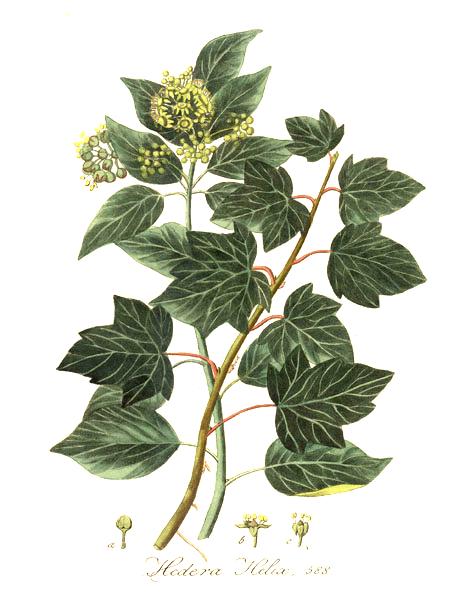 • Экстракт плюща применяется также в гомеопатической фармакологии. В гомеопатию плющи впервые ввел Mezger в 1932 г., который описал симптомы при отравлении плющом. Он считал, что плющ больше всего подходит женщинам с поздними, кратковременными менструациями, во время которых женщины чувствуют себя очень хорошо, а в остальные дни они быстро утомляются и страдают синдромом хронической усталости. В современной немецкой гомеопатии свежие листья плюща применяют также при кашле, воспалительных заболеваниях дыхательных путей, коклюше. Он входит в состав комплексного гомеопатического препарата Monapax (Nattermann), производимого в Германии.