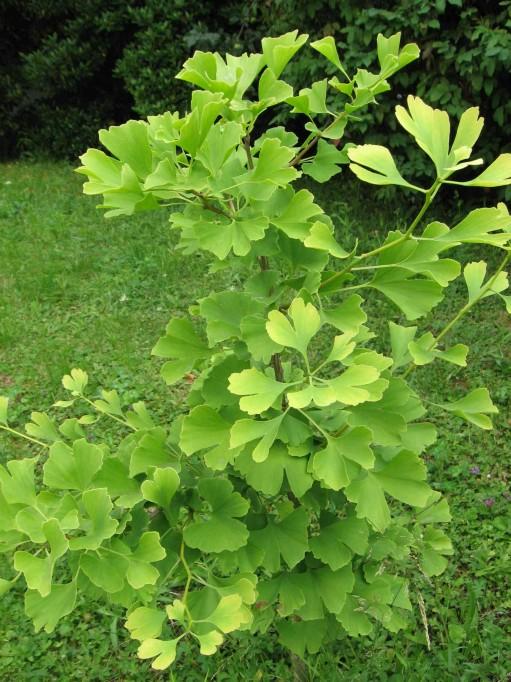 Гинкго двулопастный - дерево высотой до 40 метров и диаметром ствола до 4,5 м. Крона вначале пирамидальная, с возрастом разрастается. Гинкго листопадное растение с уникальной для современных голосеменных формой листьев - вееровидной двулопастной пластинкой шириной 5-8 на тонком черешке длиной до 10 см Жилки с дихотомическим ветвлением. Развиваются листья на длинных побегах поодиночке и быстро, либо на укороченных группами по 2-4 медленно.