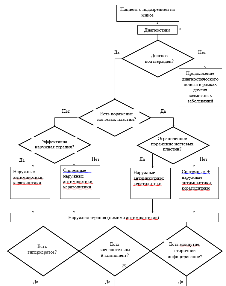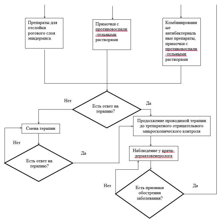 | 2 | Проведено консервативное лечение местное: изоконазолом или кетоконазолом или клотримазолом или тербинафином или миконазолом или нафтифином или оксиконазолом или сертаконазолом или циклопироксом или ундециленовой кислотой+ундециленат цинка или эконазолом или бифоназолом. Проведено системное лечение итраконазолом или тербинафином или флуконазолом | 1+, 2++, 2+ | A, в, с |