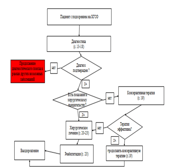 Надо отметить, что за рубежом (США, Европа, Азия) уже давно не существует практических рекомендаций для врачей по лечению ХГСО, по-скольку алгоритм помощи таким пациентам отработан несколькими десятилетиями. Основной метод лечения - хирургический. Поэтому все новейшие материалы: статьи, исследования, учебники - касаются улучшения эффективности и качества оказываемого хирургического лечения наряду с новыми данными о патогенезе и возможных новых путях лечения данного заболевания.