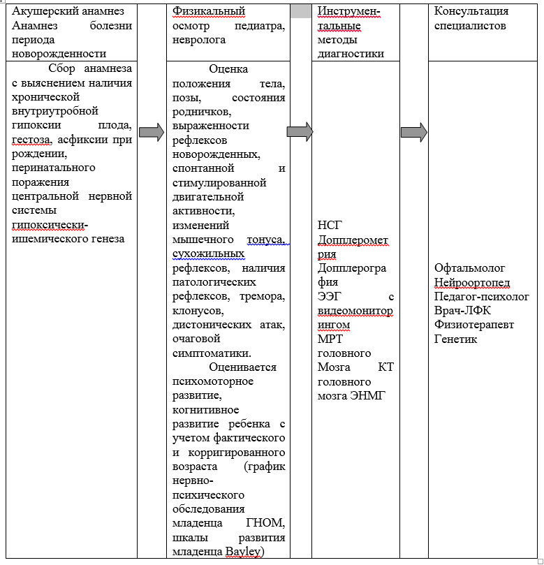 Таблица 1. Классификация последствий перинатальных поражений нервной системы у детей первого года жизни (Российская ассоциация специалистов перинатальной медицины, 2005 г.