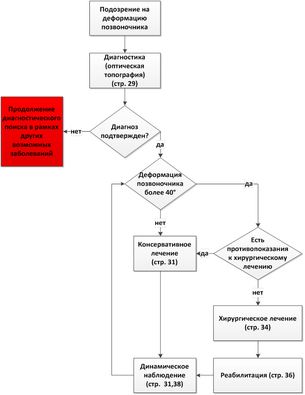 По этиологии и патогенезу вышеуказанные заболевания существенно отличаются. Даже пациенты, имеющие один и тот же диагноз, могут иметь клинические проявления различной степени выраженности. Также и характер, и величина, скорость прогрессирования сколиотических деформаций совершенно различные, что обуславливает индивидуальный подход к каждому пациенту и возможные отклонения от стандартной тактики, в зависимости от степени проявления основного заболевания.