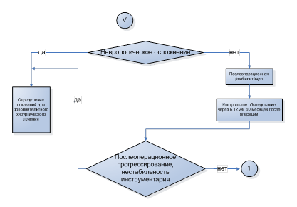 Контроль: осмотр, анкетирование SRS и спондилография С7-S1 стоя в 2 проекциях с захватом гребней таза через 6, 12 месяцев и через 2 года; далее по показаниям. Дополнительно, с более высокой кратностью проведение КОМОТ. Металлоконструкции в плановом порядке не удаляются.