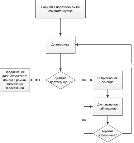 Гомоцистинурия относится к числу редких наследственных болезней обмена веществ и входит в перечень редких (орфанных) заболеваний, лечение которых проводится за счет средств регионального бюджета . После установление диагноза необходимо включение пациента в региональный сегмент регистра по жизнеугрожающим редким (орфанным) заболеваниям, с целью дальнейшего обеспечения необходимым лечебным питанием и лекарственными препаратами. В разных регионах за ведение регистра отвечают разные специалисты, но чаще всего это врачи-генетики, поэтому после установления диагноза обязательно нужно обратиться к региональному врачу генетику.