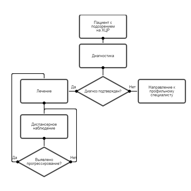 Методы, использованные для сбора/селекции доказательств. Поиск в электронных базах данных; анализ современных научных разработок по проблеме ХЦР в РФ и за рубежом; обобщение практического опыта российских и зарубежных специалистов.