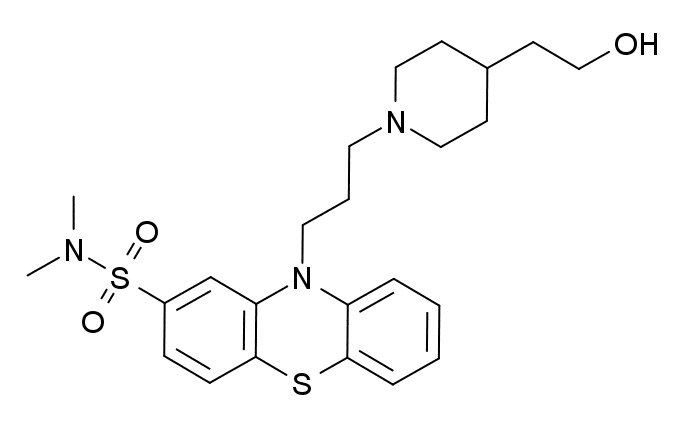 10-[3-[4-(2-Гидроксиэтил)-1-пиперидинил]пропил]-N,N-диметил-10H-фенотиазин-2-сульфонамид (и в виде пальмитата или ундецилената).