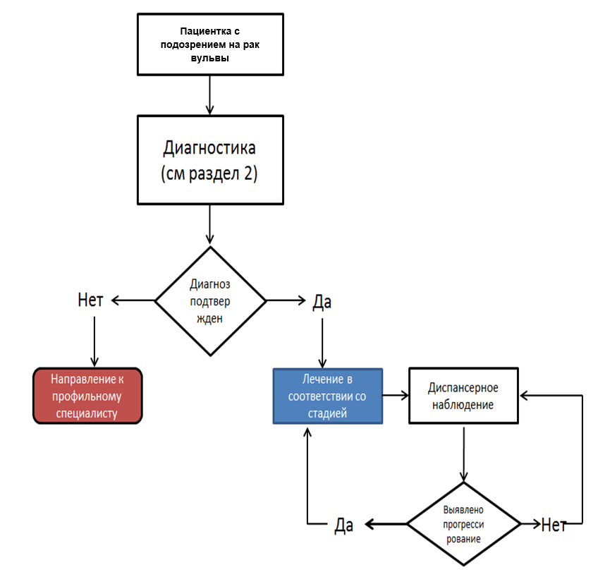 Стадирование плоскоклеточного РВ проводится по 2 классификациям: TNM (8-е издание, 2017) и FIGO (2009) ( см таблицу). Применяется только для первичного РВ. Должно быть гистологическое подтверждение диагноза. Опухоль, распространяющаяся на влагалище, должна быть классифицирована как РВ.