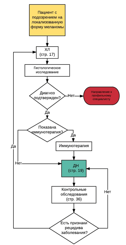 Резектабельная меланома кожи и/или резектабельные метастазы меланомы кожи. Меланома кожи или ее метастазы (как правило, метастазы в регионарные лимфатические узлы), которые могут быть подвергнуты радикальному хирургическому удалению R0. На оценку резектабельности могут влиять такие факторы, как объем (количество и размеры) метастатического поражения лимфатических узлов, соотношение с магистральными сосудами, наличие сателлитов и транзитных метастазов, лимфангоита Оценка резектабельности процесса весьма субъективна и может варьировать от учреждения к учреждению и от хирурга к хирургу.
