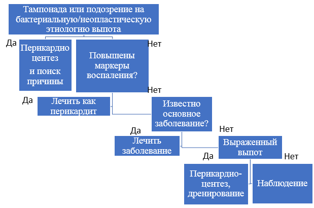 Диагностика различных этиологических вариантов перикардиального выпота [1].
