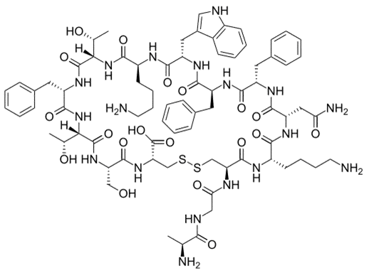 L-Аланилглицил-L-цистеинил-L-лизил-L-аспарагинил-L-фенилаланил-L-фенилаланил-L- триптофил-L-лизил-L-треонил-L-фенилаланил-L-треонил-L-серил-L-цистеин циклический (1 14) дисульфид.