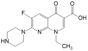 1-Этил-6-фтор-1,4-дигидро-4-оксо-7-(1-пиперазинил)-1,8-нафтиридин-3-карбоновая кислота.