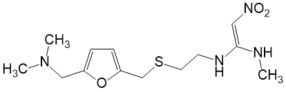 N-[2-[[[5-[(Диметиламино)метил]-2-фуранил]метил]тио]этил]-N -метил-2-нитро-1,1-этендиамин (в виде гидрохлорида).