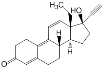 (17альфа)-13-Этил-17-гидрокси-18,19-динорпрегна-4,9,11-триен-20-ин-3-он.