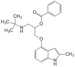 (±)-1-[(1,1-Диметилэтил)амино]-3-[(2-метил-1H-индол-4-ил)окси]-2-пропанол бензоат(эфир)(и в форме малеата 1:1).