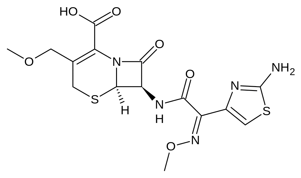 (+-)-1-Гидроксиэтил-(+)-(6R,7R)-7-[2-(2-амино-4-тиазолил)глиоксиламидо]-3-(метоксиметил)-8-оксо-5-тиа-1-азабицикло[4.2.0]окт-2-ен-2-карбоновая кислота (и в виде проксетила).