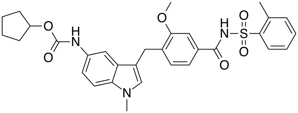 4-(5-Циклопентилоксикарбониламино-1-метилиндол-3-илметил)-3-метокси-N-о-толтилсульфонилбензамид.