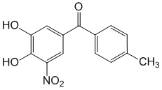 Блокирует катехол-О-метилтрансферазу и тормозит биотрансформацию одновременно назначаемой леводопы, стабилизируя ее содержание в плазме и увеличивая терапевтический эффект (замедляется образование 3-метокси-4-гидрокси-L-фенилаланина и таким образом уменьшается вероятность побочных проявлений).