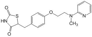 5-[[4-[2-(Метил-2-пиридиниламино)этокси]фенил]метил]-2,4-тиазолидиндион (и в виде малеата).