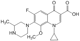 1-Циклопропил-6-фтор-8-метокси-7-(3-метилпиперазин-1-ил)-4-оксохинолин-3-карбоновая кислота (в виде сесквигидрата)[[g.