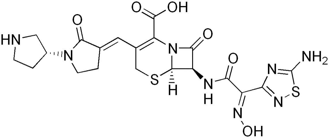 (6R,7R)-7-[(2Z)-2-(5-Амино-1,2,4-тиадиазол-3-ил)-2-(гидроксиимино)ацетамид]-8-оксо-3-[(E)[(3 R)-2-оксо-[1,3 -бипирролидин]-3-илиден]метил]-5-тиа-1-азабицикло[4.2.0]окт-2-ен-2-карбоновая кислота.