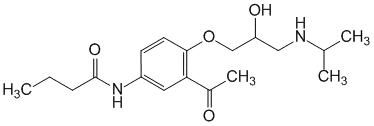(±)-N-[3-Aцетил-4-[2-гидрокси-3-[(1-метилэтил)амино]пропокси]фенил]бутанамид (в виде гидрохлорида).