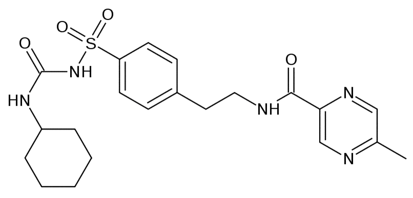 N-[2-[4-[[[(Циклогексиламино)карбонил]амино] сульфонил]фенил]этил]-5-метилпиразин карбоксамид.