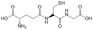 Глутатион представляет собой линейный трипептид с сульфгидрильной группой, в состав которого входят L‑глутамин, L‑цистеин и глицин. Он играет важную функцию в защите клеток организма, являясь сильным антиоксидантом. В организме человека нехватка глутатиона ведет к возникновению многих болезней, таких как болезнь Паркинсона, тирозинемия I типа, отравление алкоголем и другие. Эксперименты in vivo >in vivo и in vitro >in vitro показали, что нехватка глутатиона может привести к повреждению митохондрий и гибели клеток, вызванных увеличением числа токсичных форм кислорода, приводящих к повышению количества свободных радикалов.