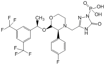[3-([(2R,3S)-2-[(1R)-1-[3,5-бис(трифторметил)фенил]этокси]-3-(4-фторфенил)морфолин-4-ил]метил)-5-оксо-2H-1,2,4-триазол-1-ил]фосфоновая кислота (в виде димеглумина).