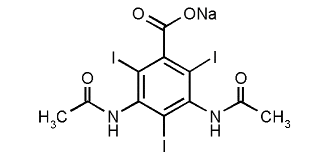 Натриевая соль 3,5-бис-(ацетиламидо)-2,4,6-трийодобензойной кислоты (в виде смеси с меглуминовой солью).