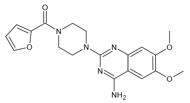 1-(4-Амино-6,7-диметокси-2-хиназолинил)- 4-(2-фуранилкарбонил) пиперазин (и в виде гидрохлорида).